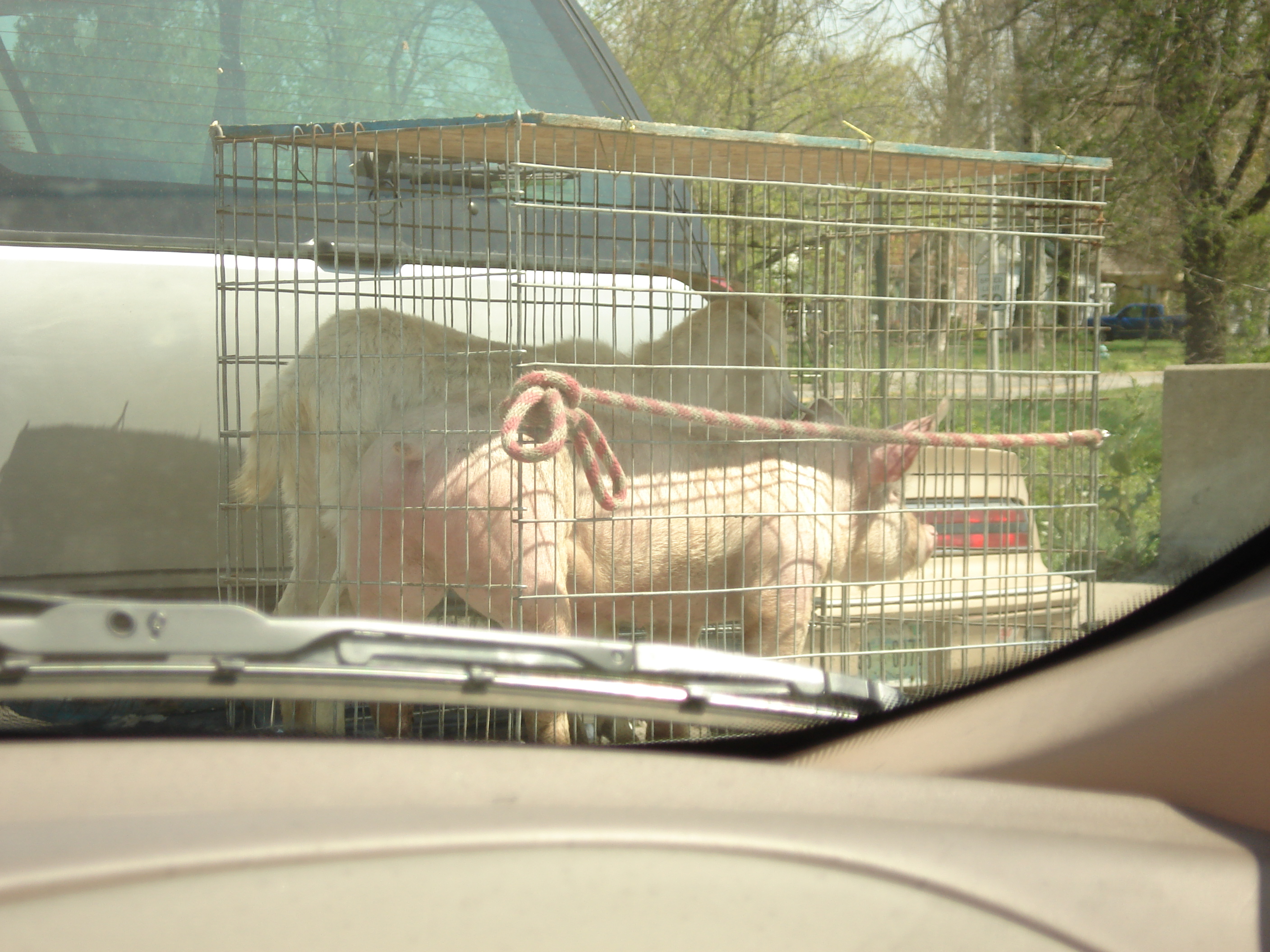 What a great picture. On the way to market or on the way to be a pet for some children. I vote for being a pet.